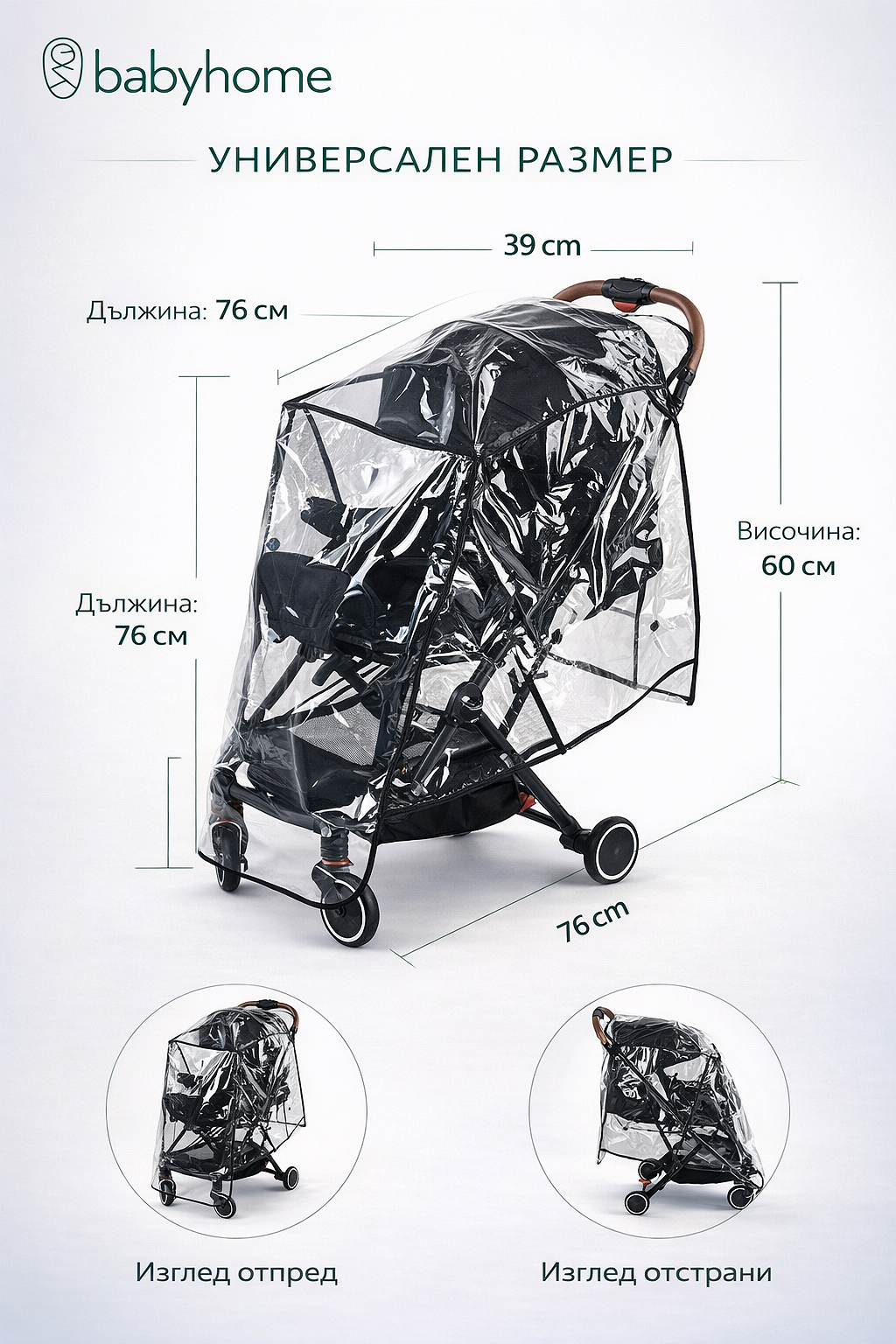 Универсалният дъждобран за детска количка от Babyhome е практичен и удобен аксесоар, създаден с цел да защити вашето дете от дъжд, вятър и други атмосферни условия по време на разходки. Този дъждобран е специално проектиран, за да осигури комфорт и сухота на малките пътници и да предостави спокойствие на родителите, като запази количката и бебето ви защитени.Основни характеристики и предимства:Универсалност и съвместимост.Защита от атмосферни условия.Прозорци за визуалност. Лесен монтаж и демонтаж.Лек и компактен.Babyhome се грижи за удовлетворяването на нуждите на децата и родителите и предоставя практични решения, като универсалния дъждобран, който е предназначен да осигури защита и комфорт на малките пътници по време на всякакви временни условия.