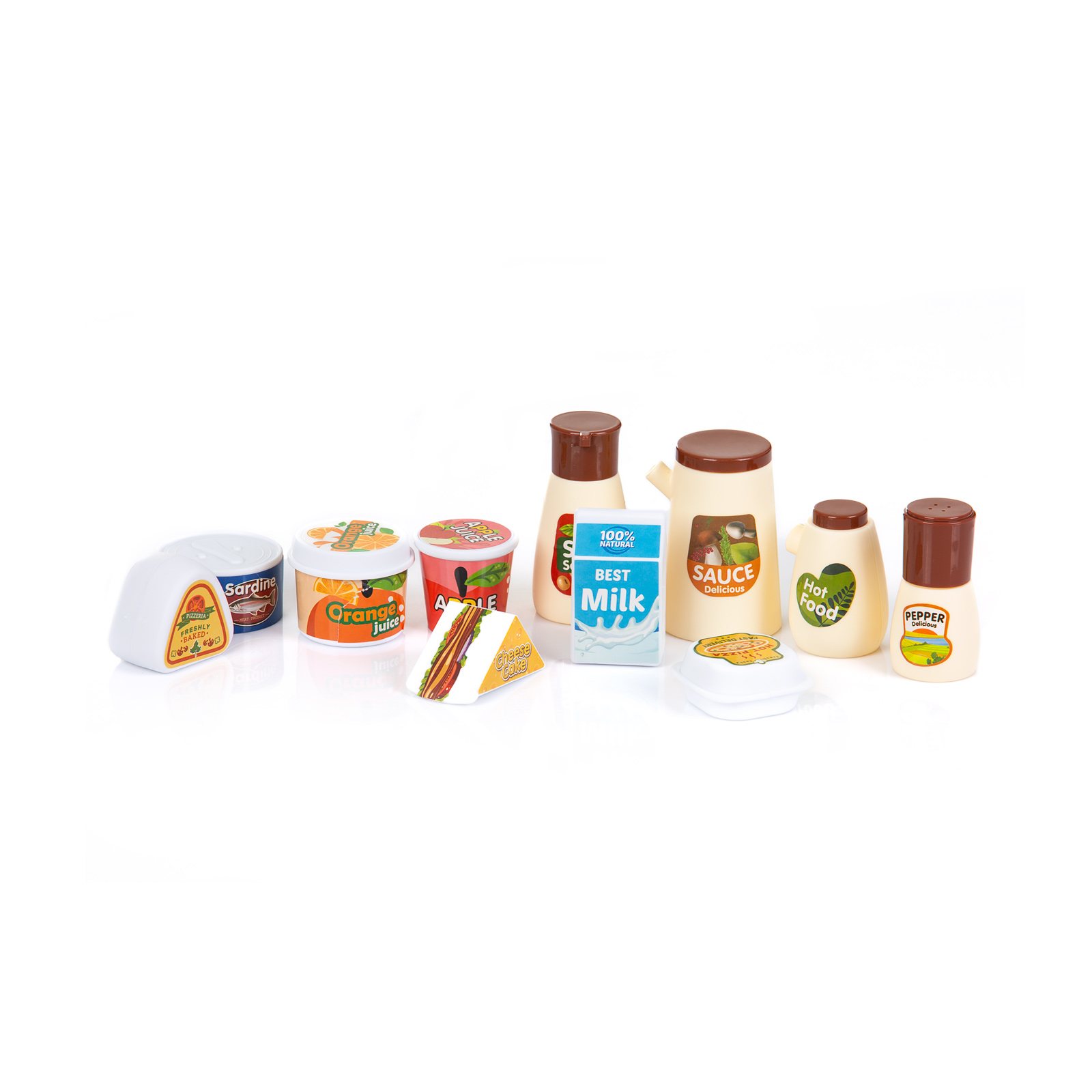 - Разнообразие от 113 цветни и реалистични аксесоари - във формата на различни видове хранителни продукти (зеленчуци, плодове, кутии сок, снакс, сладолед и др) , както и богат набор от кухненски прибори (тиган, чинии, тенджера, чашки, шишенца за сос, чайник, различни по големина кани и съдове, и др.) комплект прибори за готвене, кошчета за отпадъци и др)